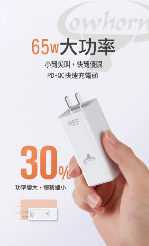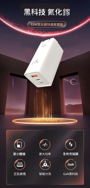 | 單孔輸出功率: | Type-C1=65W .Type-C2=30W . USB-A=30W |
