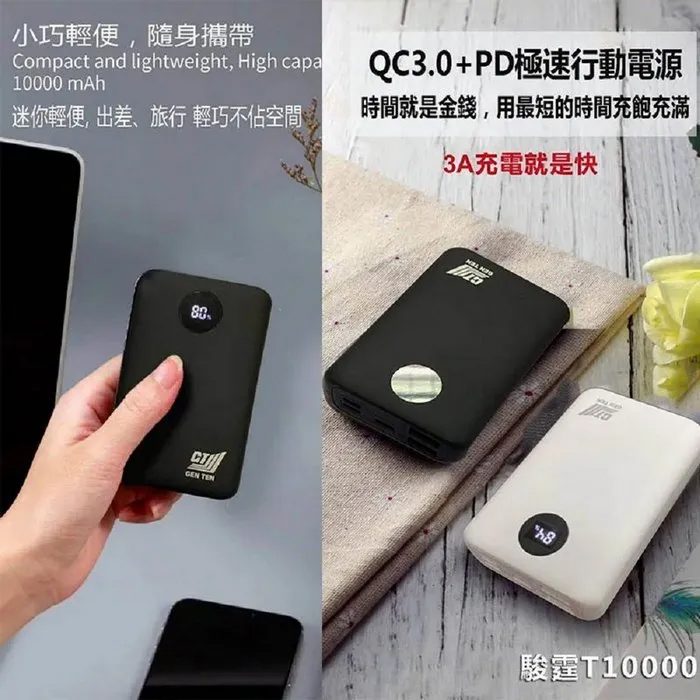 | 商品名稱: | GEN TEN 行動電源 T10000 QC3.0 PD充電10000MAH |